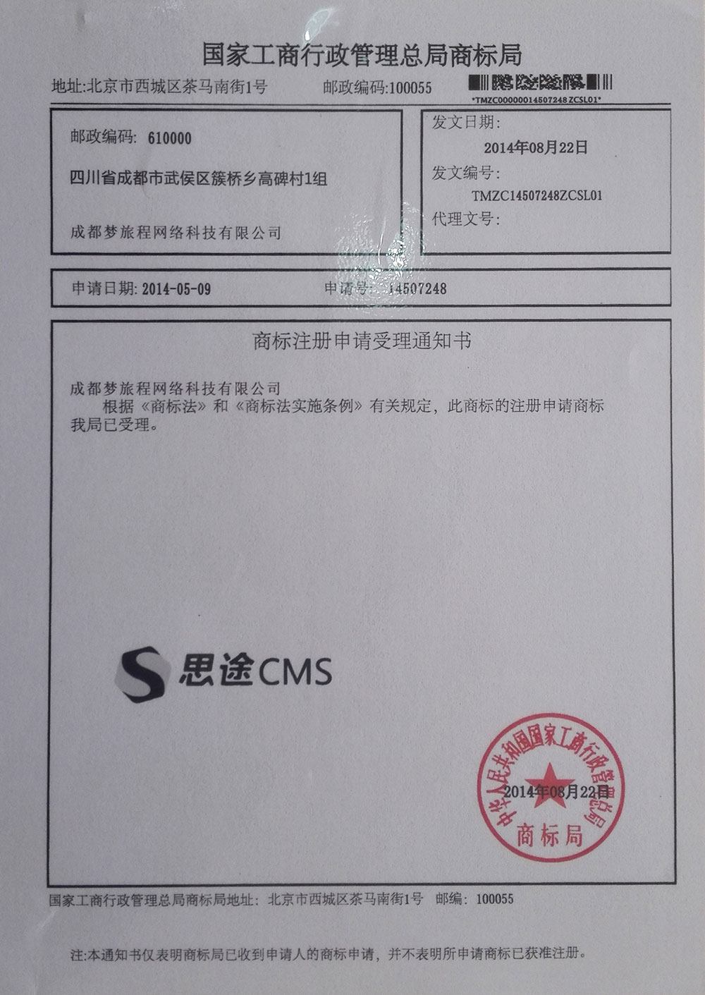 (2)思途旅游CMS軟件著作權(quán)登記證號:2016SR262037