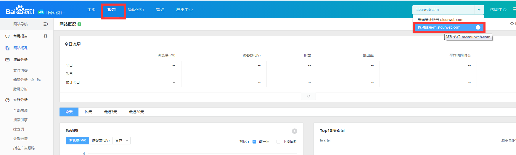 保存后,進入報告,選擇移動站點,就可以查看移動站點的相關(guān)流量數(shù)據(jù)。