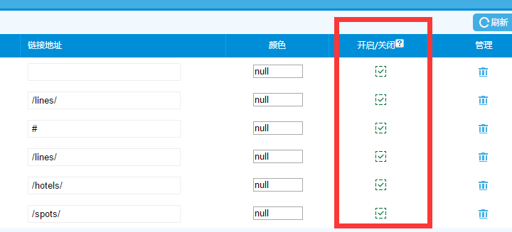 4、這里可以設(shè)置該導(dǎo)航前臺(tái)顯示的顏色,比如這里將“國(guó)內(nèi)旅游”下的“四川”和“西藏”設(shè)為橙色,那么前臺(tái)的顯示就是橙色。