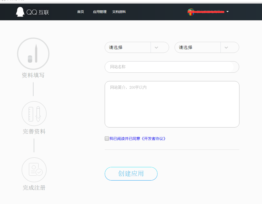 點擊創建應用后,選擇“創建網站應用”,然后配置里面的內容;