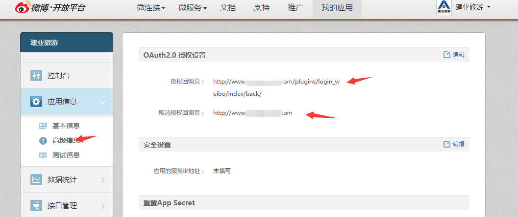二、新浪微博登陸設置(開放平臺,不是微博賬號)