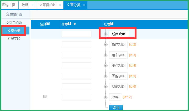 5.目的地屬性設置(設置某個目的地之后,在前臺攻略搜索頁面會顯示該屬性),請看下圖: