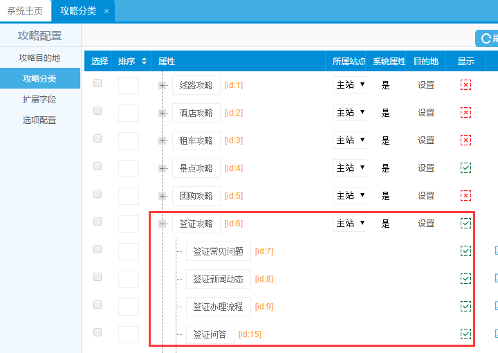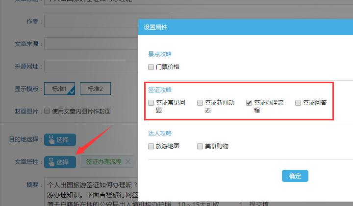 五、選擇為“簽證攻略”里的屬性: