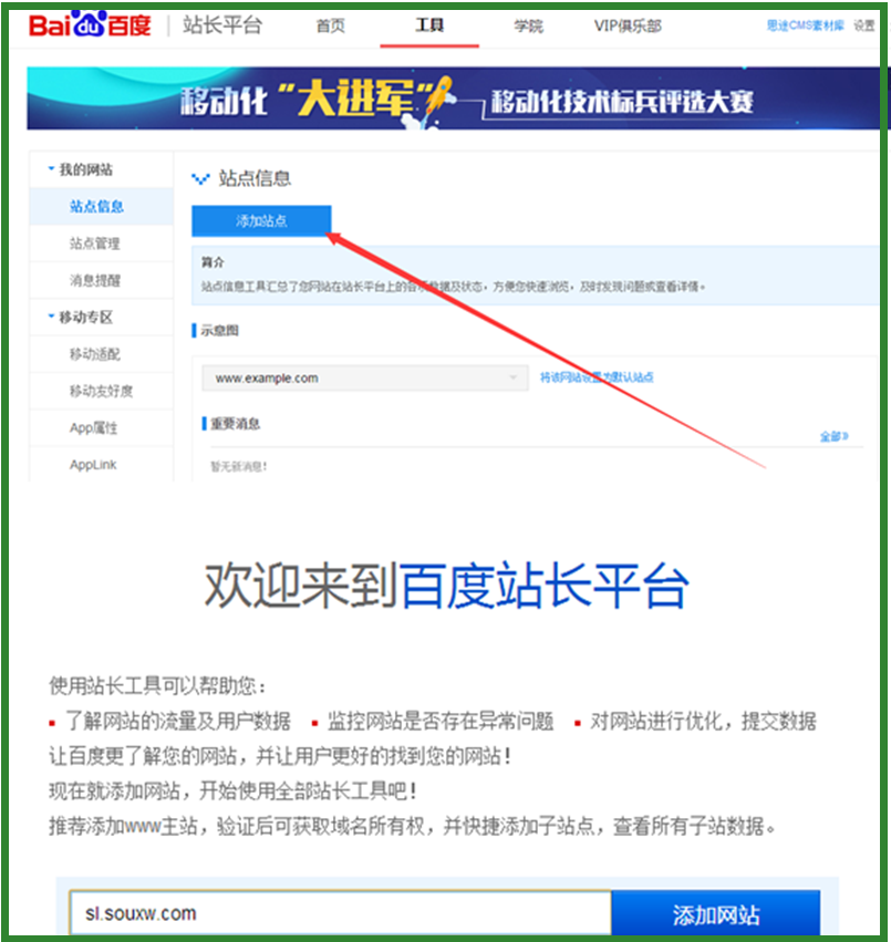 第五步:點擊左側消息提醒,如果站點有什么信息,會在這里進行提示