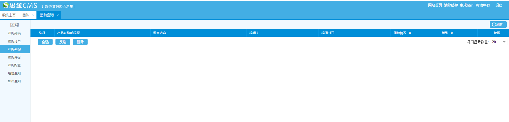 可以針對團(tuán)購在前臺產(chǎn)品詳情頁進(jìn)行咨詢的問題進(jìn)行回復(fù)管理。