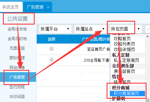 在公共設置--->廣告管理--->積分商城首頁:添加廣告
