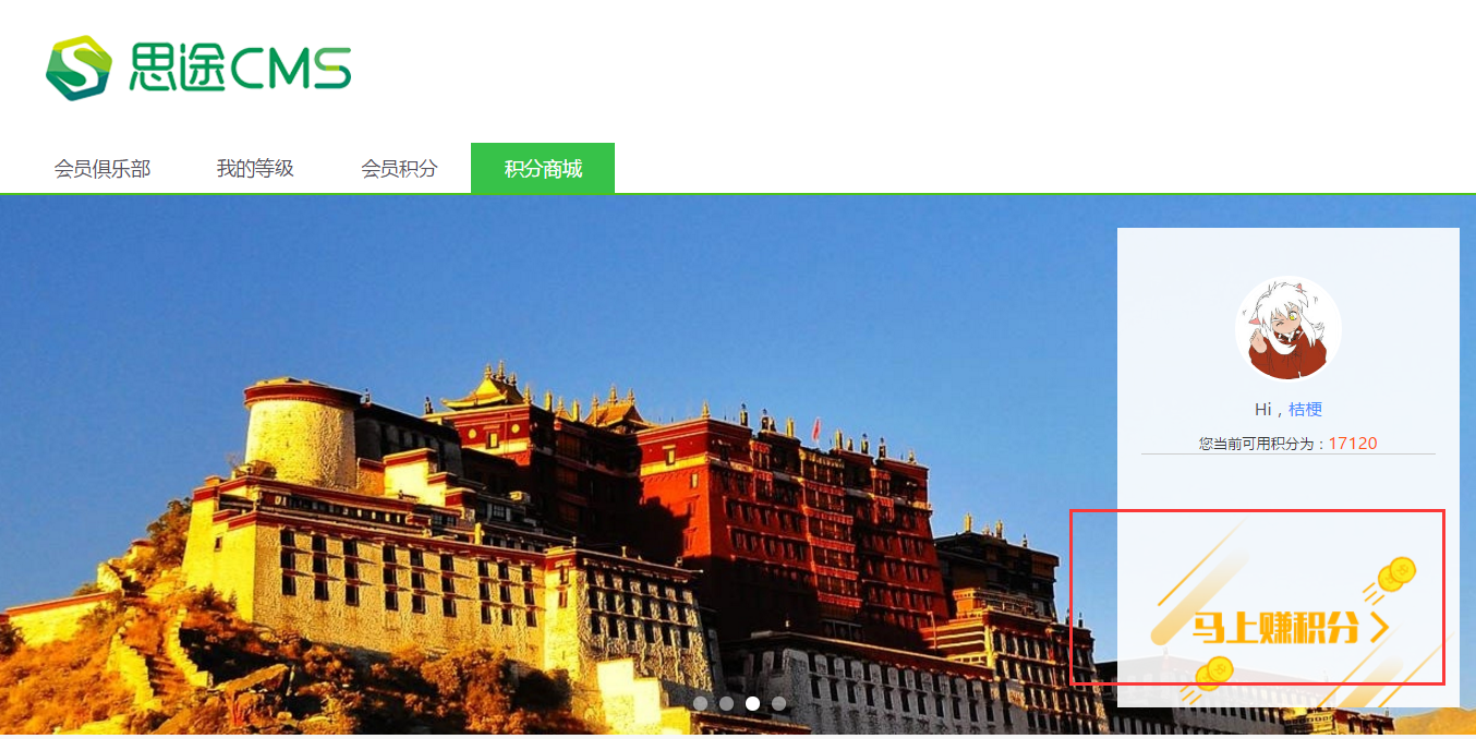 2、會員積分頁面--->積分兌換:可以進入積分商城首頁