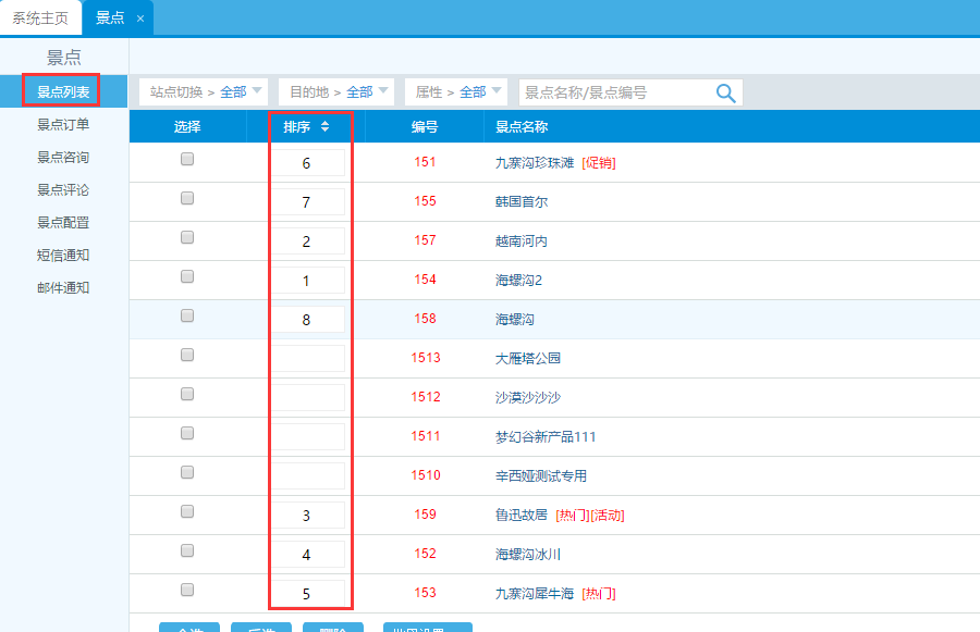 此版塊只展示景點(diǎn)、酒店、租車(chē)3個(gè)板塊,不可更改,產(chǎn)品排序按后臺(tái)的數(shù)字排序從小到大展示前8個(gè)開(kāi)啟狀態(tài)的產(chǎn)品: