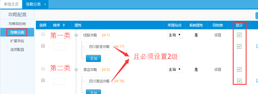 上圖就是攻略分類中的第一類和第二類位置,且必須要設置2級,并且開啟狀態,在攻略設置時候選擇類別: