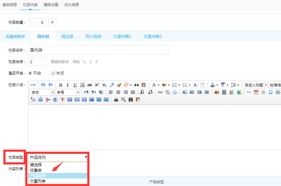 PS:因?yàn)樵跈谀款愋吞庍x擇的是產(chǎn)品陳列,所以篩選框處不會(huì)出現(xiàn)攻略等軟文選項(xiàng)。
