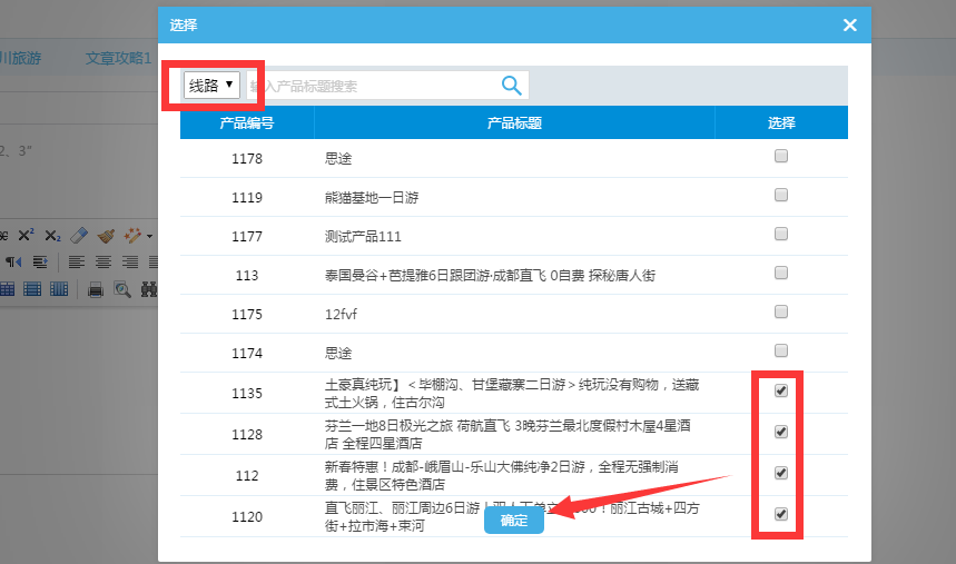 選擇好產(chǎn)品類型后,比如勾選了線路產(chǎn)品,彈窗內(nèi)就會(huì)產(chǎn)品線路類的相關(guān)產(chǎn)品