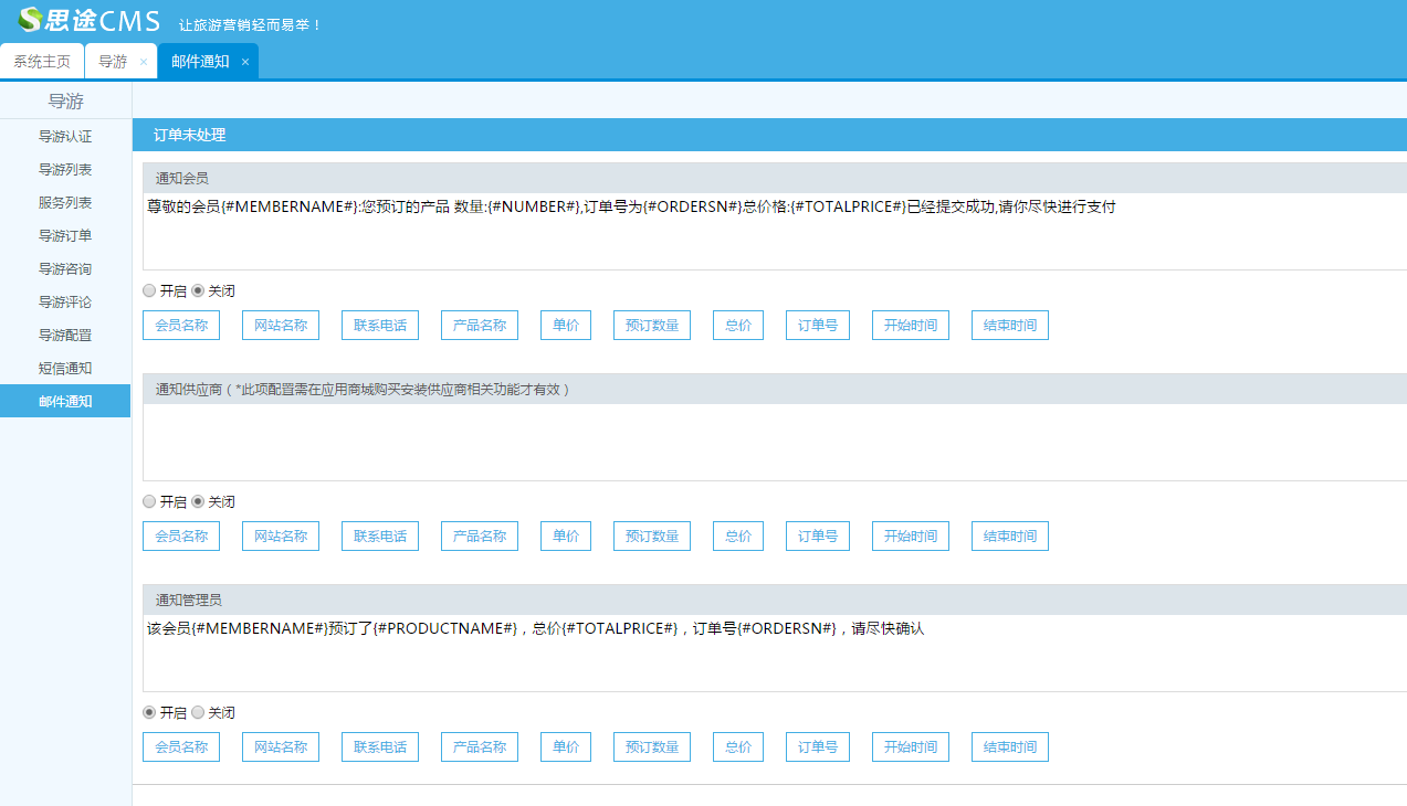 1、導(dǎo)游目的地:(全局目的地必須開啟,否則欄目下的目的地不會(huì)顯示出來)