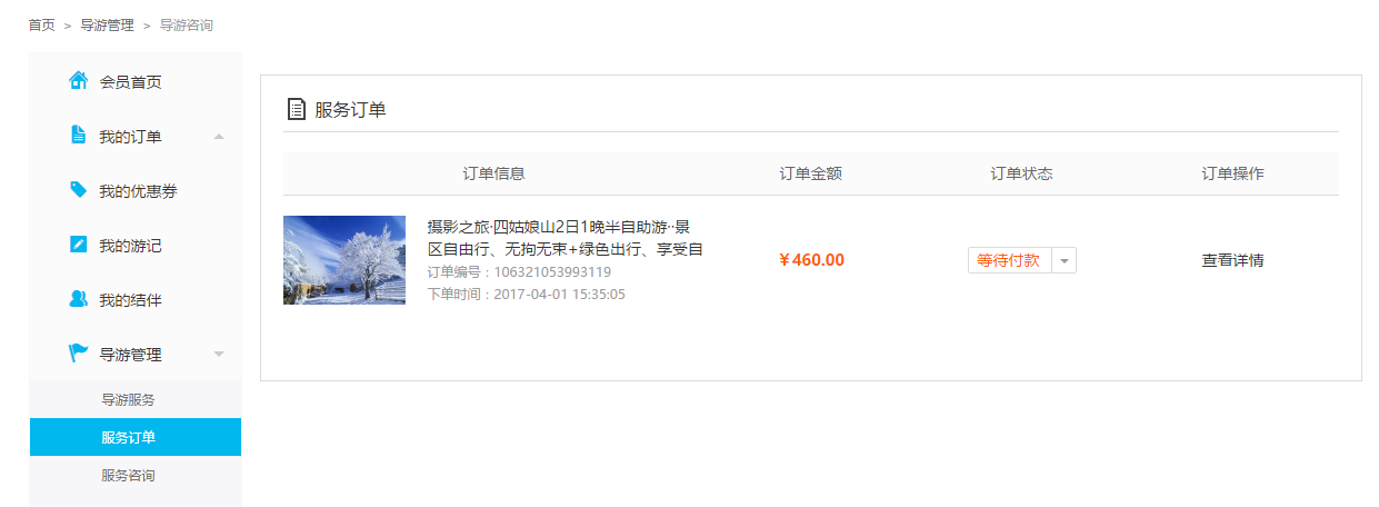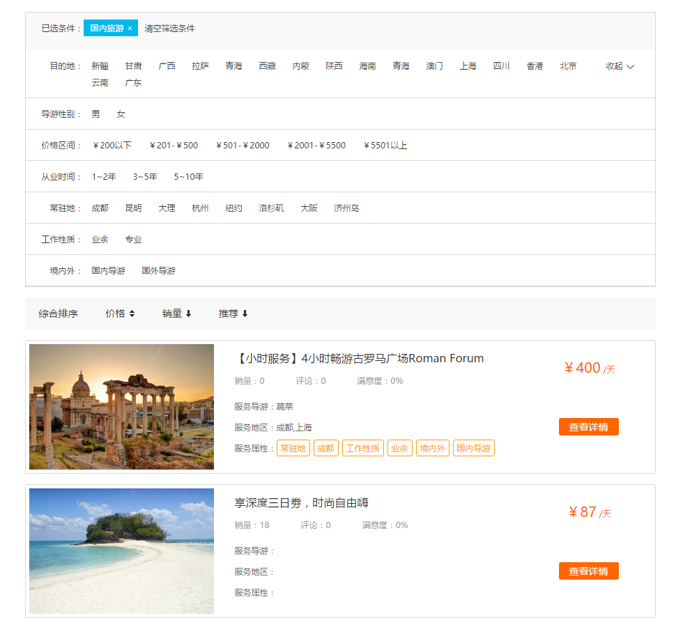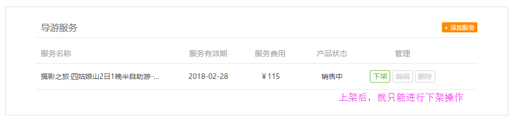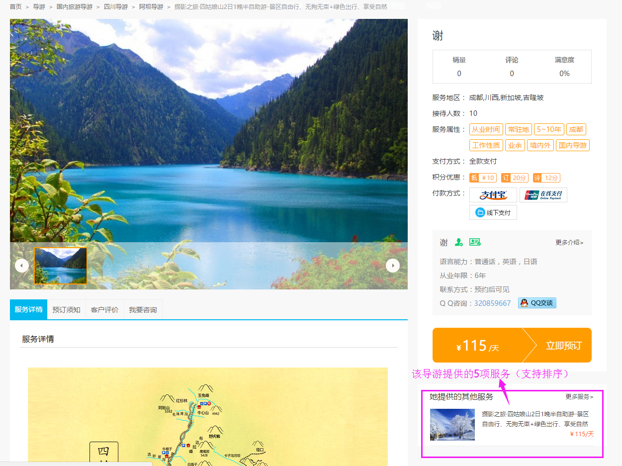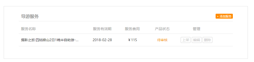 PS:上架后前臺(tái)可以看見該導(dǎo)游服務(wù)產(chǎn)品