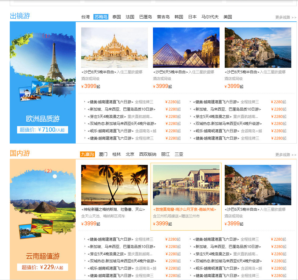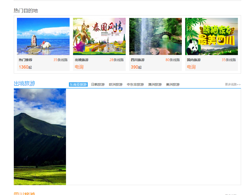 綠色小清新線路首頁模板,線路版塊最多可設置三個線路版塊(版塊設置可請參考http://www.aibaosc.com/help/show/708.html),這三個線路版塊的廣告位均有自己的獨立標識