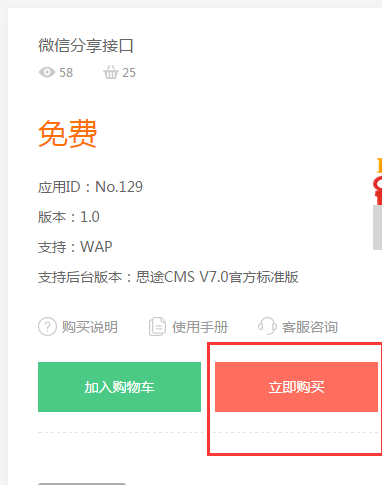 1.1在應用商城購買http://www.aibaosc.com/app/129.html,微信分享接口應用。