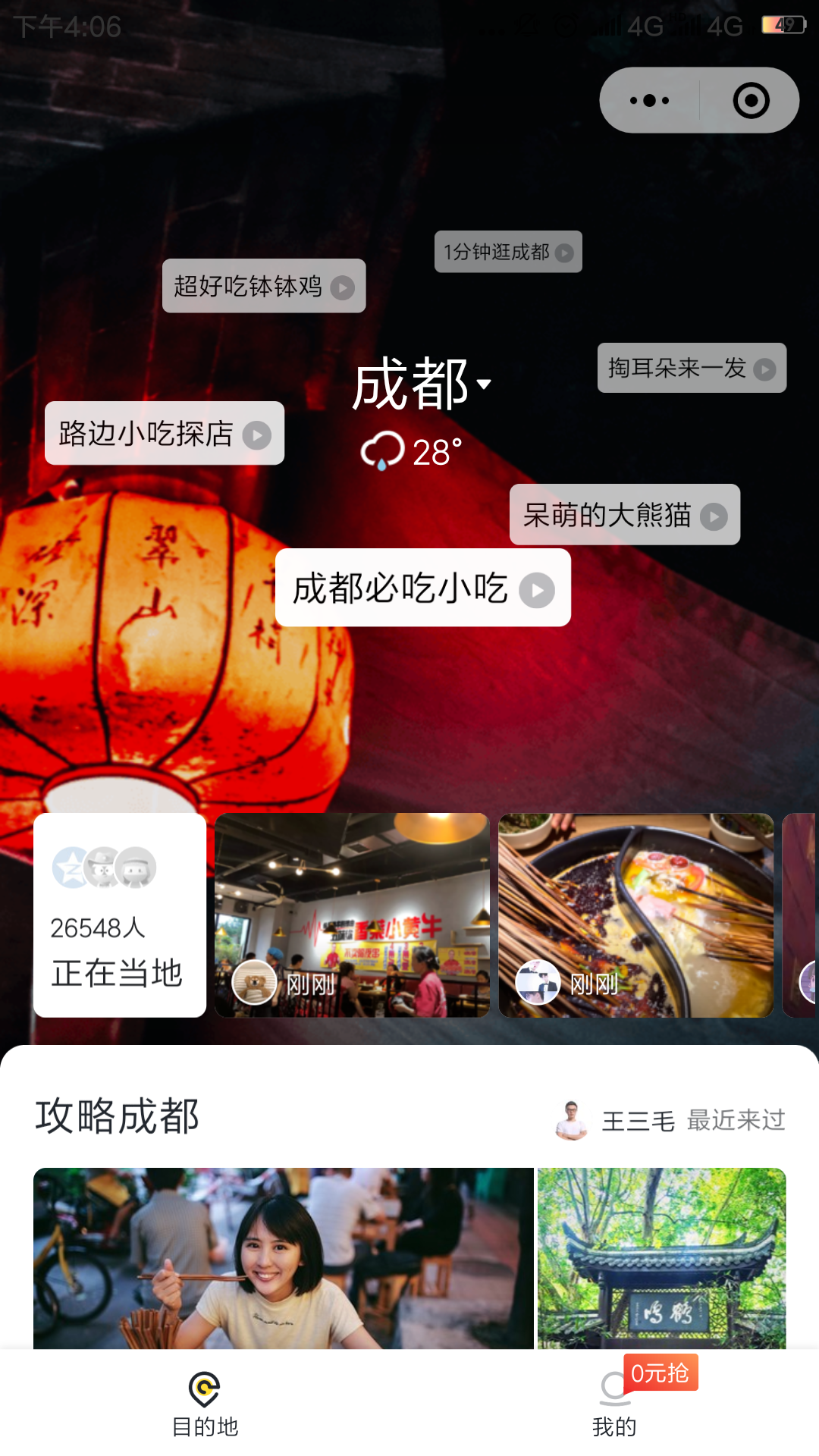 該小程序是直接通過輸入目的地、景點來獲取游玩的攻略,同時首頁還推薦了當季熱門目的地。選擇游玩目的地,可以看到關于該景區的介紹,以及許多游客分享該目的地的一些攻略。可以說,整個頁面設計較為簡潔,一目了然。