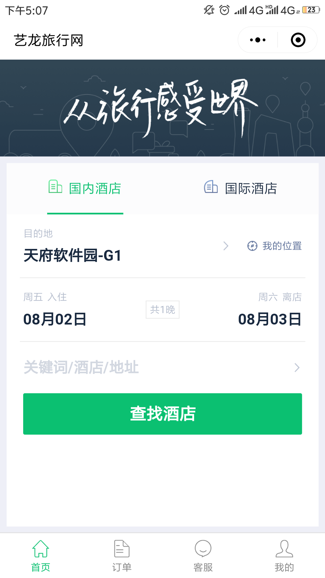 這小程序的模板用banner圖展示出slogan,游客可選擇國內或者國外來預訂酒店。值得一提的是,該模板帶了電話客服功能,解決游客在訂房過程中遇到的問題以及訂單的投訴??梢哉f,該模板的設計將有效提升游客的滿意度。