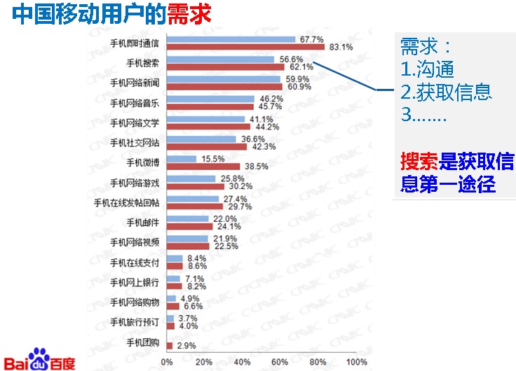 移動搜索推廣是指:當網民使用手機等移動設備進行搜索時,在搜索結果中,展示推廣的結果。