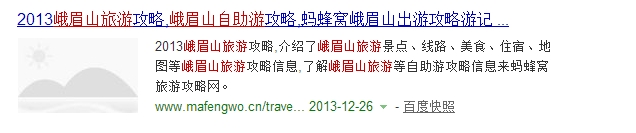 首頁的描述非常重要,這是直接影響到搜索引擎排名前后的問題之一,在搜索結果當中,不僅首頁關鍵詞會出現飄紅的現象,首頁的描述同樣會有飄紅的現象發生,通過本人細心的觀察,排名在搜索引擎首頁的關鍵詞描述飄紅的次數一般都是在3次左右。如圖所示: