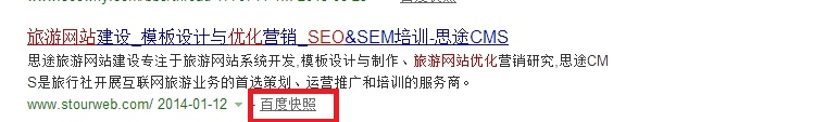 百度推廣只要您付費就能帶來源源不斷的訪問量,但是網頁有百度快照不代表網站就有源源不斷的訪問量,如果想讓自然搜索結果排名靠前獲得免費的網友訪問網頁,需要做網站架構優化、網頁內容優化等相關的工作,思途旅游互聯網營銷學院推薦您查看: