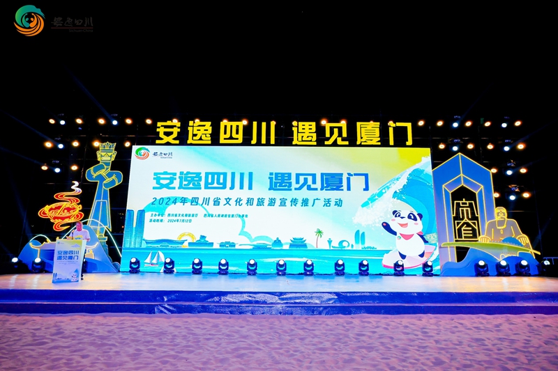 可愛的大熊貓、神秘的三星堆、藏羌彝民族風(fēng)情展……7月12日晚,福建廈門椰風(fēng)寨沙灘上,愜意海風(fēng)伴隨濃濃巴蜀韻,2024年四川省文化和旅游宣傳推廣活動(dòng)在這里舉行。