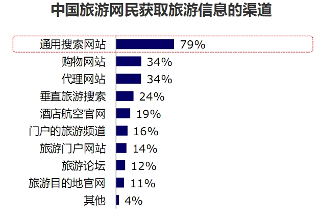 以上是百度2014年統(tǒng)計(jì)的2013年整年中國網(wǎng)民獲取旅游信息的渠道統(tǒng)計(jì)圖。如圖所示,我們可以發(fā)現(xiàn)以下特點(diǎn):