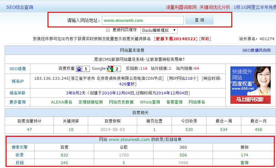 方法二、使用站長工具網站查詢 以站長之家的站長工具為例。打開站長工具網站,在網址框輸入要查詢收錄數的網址,這里以www.aibaosc.com為例即可查詢:
