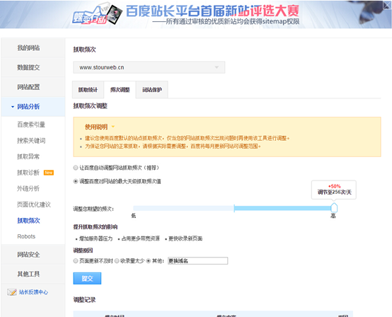 調整老域名( www.stourweb.cn)的 抓取頻次 讓百度更快速識別301重定向