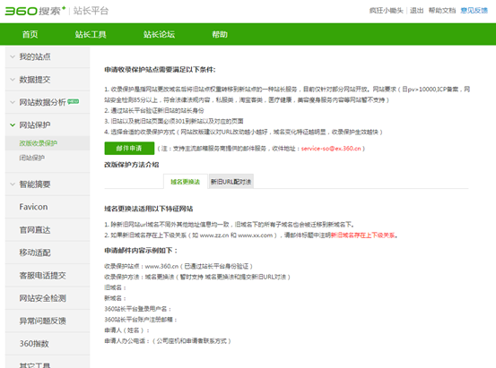 收錄保護方法:域名更換法(暫時支持 域名更換法和提交新舊URL對法)