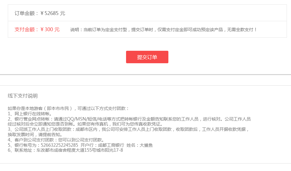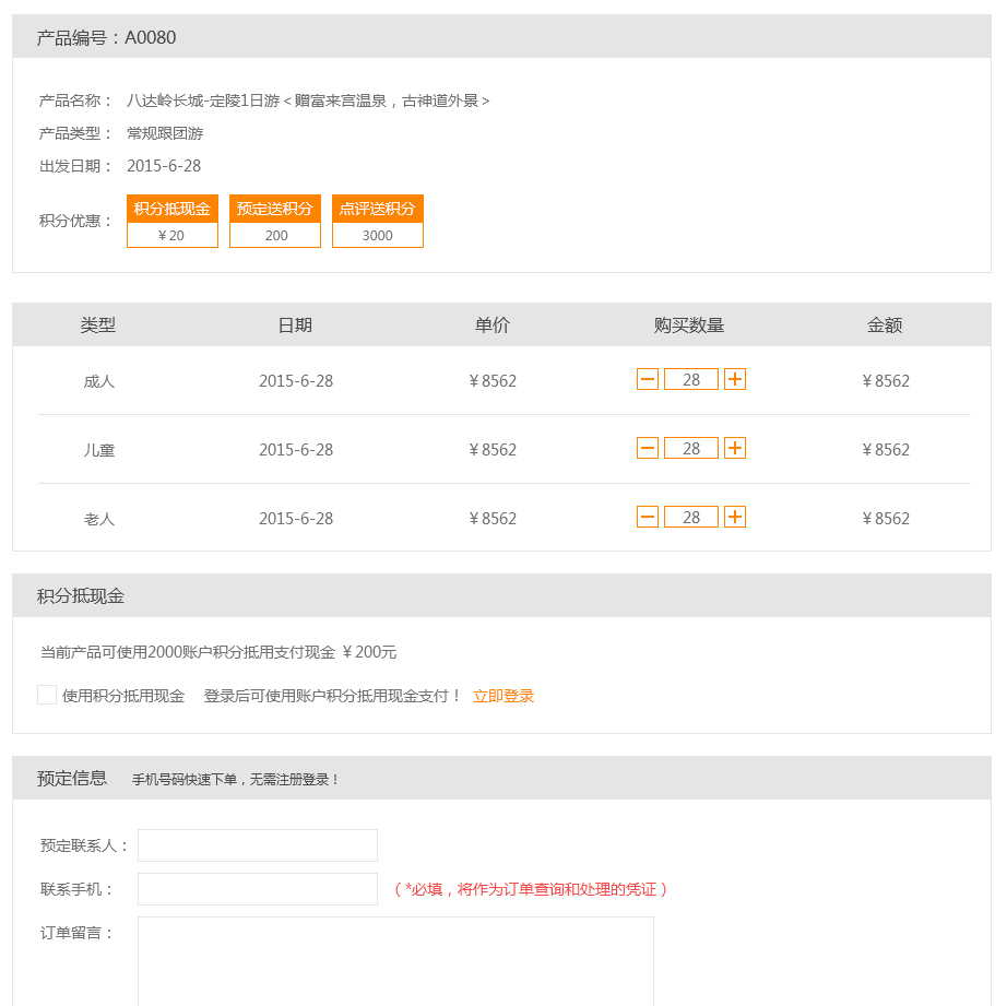 全新的預(yù)定流程實(shí)現(xiàn)客戶(hù)快速預(yù)定和快速查詢(xún),客戶(hù)無(wú)需注冊(cè)登錄填寫(xiě)手機(jī)號(hào)碼即可成功預(yù)定產(chǎn)品,并增加了全站的線下支付和線下支付說(shuō)明功能,方便客戶(hù)線下轉(zhuǎn)賬等多種付款方式。