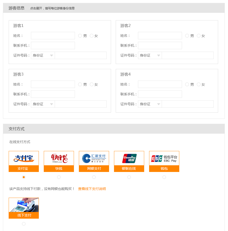 線路訂單增加游客信息填寫(xiě)功能,方便為客戶(hù)提供更準(zhǔn)確的服務(wù)。