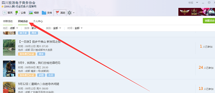 QQ同城活動大家應該也不會陌生,一般進入QQ群,除了看到群內(nèi)活動以外,大家還可以看到QQ同城活動,里面的活動非常豐富,這些活動你的可以點擊進去,然后將里面的報名參加活動的人QQ篩選出來!最好的方式是選擇技術方式將號碼篩選出來,如果人工篩選,相對比較浪費時間!