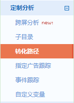 當我們設定了路徑類型的步驟轉化時,在百度統計網站報告定制分析中,有一個轉化路徑。