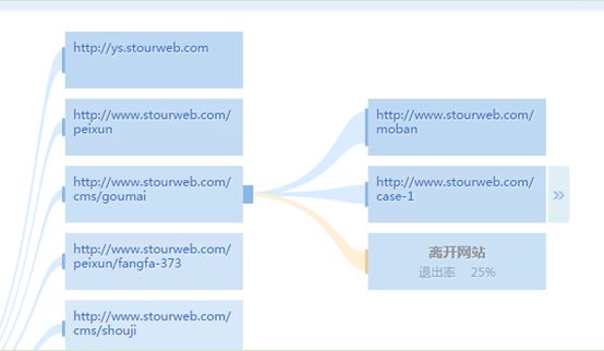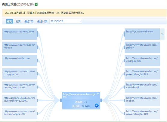 通過頁面上下游,我們可以設置需要分析的頁面,獲知他們的來路以及流量從這個頁面分發后又進入了哪些頁面。