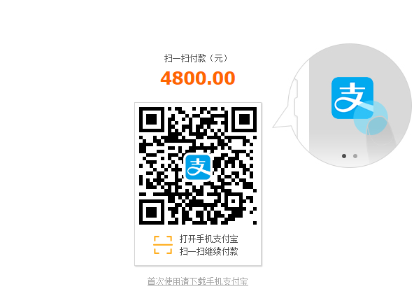 在“優(yōu)惠方式”下方“可用抵用券”下有剛剛通過“積分活動”兌換的“400元抵用券”,在該抵用券前面點擊選項框即,“支付金額”將自動抵消400元,在點擊“立即支付”按鈕得到以下界面: