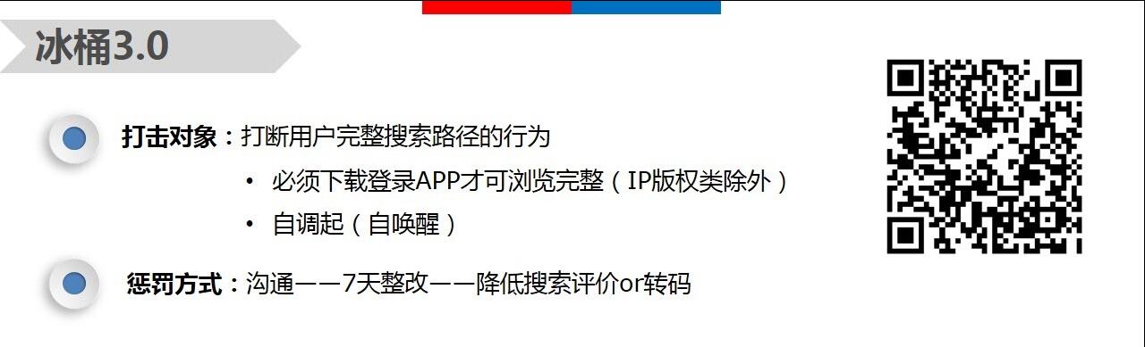 秉承用戶至上的原則,百度移動搜索不斷更新系統(tǒng)、升級算法,一切都為了讓用戶擁有更順暢的搜索體驗。百度移動搜索升級冰桶算法3.0,3.0版本,嚴厲打擊在百度移動搜索中,打斷用戶完整搜索路徑的調(diào)起行為。