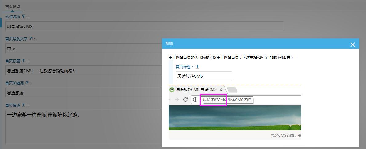 針對用戶使用系統時的每個配置項目,思途CMS都提供操作幫助指導。幫助用戶更好地理解配置項目和操作方法。云端幫助體系將大大提高用戶使用系統的效率。