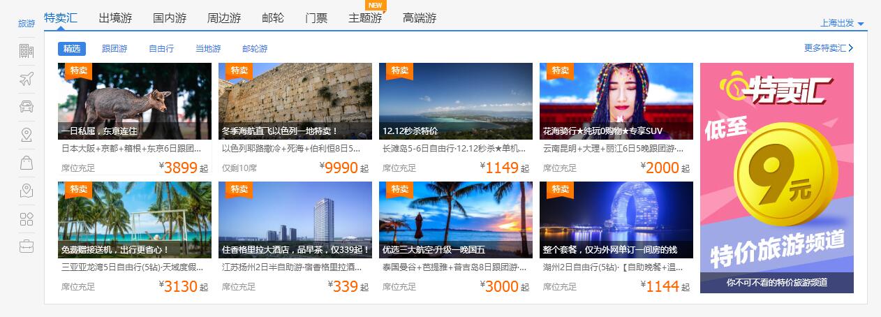 ● 直接營銷:指網(wǎng)站直接提供各類旅游產(chǎn)品,如線路、機(jī)票、酒店、門票等,游客瀏覽后直接購買。攜程、途牛等就是典型的直接營銷型網(wǎng)站,游客在網(wǎng)站上的主要目的就是購買產(chǎn)品。