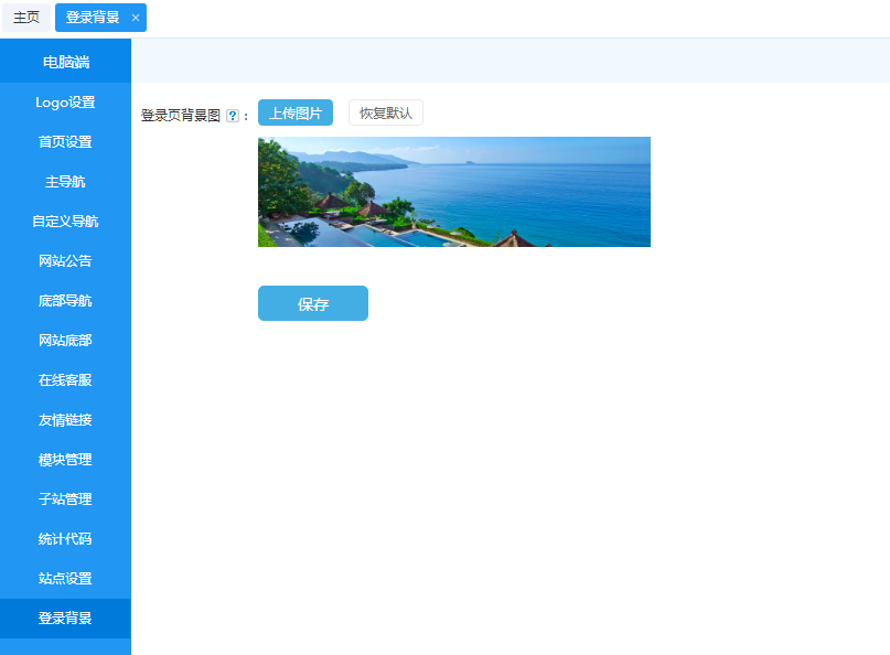 登錄后臺系統 > 站點管理 > 電腦端,找到登錄背景