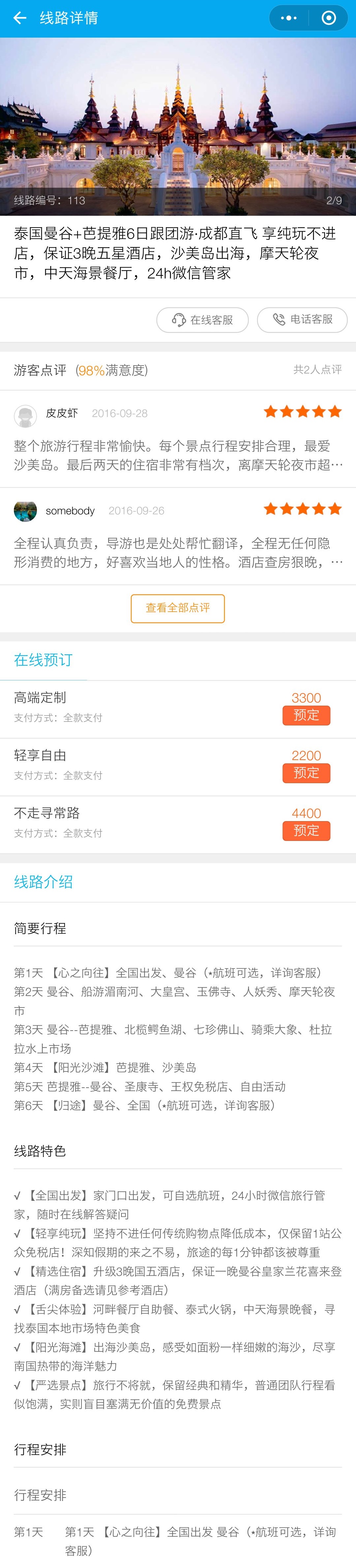 新版本中,加入了在線客服功能。除了之前提供的電話咨詢外,用戶現(xiàn)在可以直接在產(chǎn)品詳情頁點擊在線客服,進行線上產(chǎn)品咨詢。用戶瀏覽產(chǎn)品和預定行程將變得更加流暢,高效。
