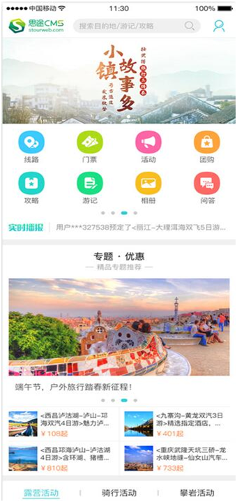 相比于PC端,移動(dòng)旅游網(wǎng)站的模板頁(yè)面設(shè)計(jì)更需要簡(jiǎn)潔干凈,案例中無(wú)論是在首頁(yè)的配圖選擇和導(dǎo)航欄的結(jié)構(gòu)設(shè)計(jì)上都完美做到了這一點(diǎn)。清新的配圖,簡(jiǎn)潔的導(dǎo)航欄,以及文案設(shè)計(jì)上都最大限度照顧了游客的瀏覽體驗(yàn),平凡卻并不平庸才是這個(gè)移動(dòng)端旅游網(wǎng)站模板的真實(shí)寫(xiě)照。