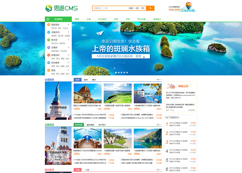 很多站長都會將途牛等OTA網(wǎng)站作為學(xué)習(xí)和參考的對象,因?yàn)檫@些大佬們的門戶首頁兼具精美和實(shí)用的特性。而思途仿途牛門戶首頁模板就是專為中大型旅游網(wǎng)站或綜合里門戶旅游網(wǎng)站打造。這套模板的功能齊全,基本涵蓋了線路、酒店、門票等所有常見業(yè)務(wù)。欄目分類也較為清晰,游客可以非常直觀地查找到自己所需要的旅游產(chǎn)品。同時,這套明星模板還設(shè)計了高清大圖Banner以及點(diǎn)評攻略等引導(dǎo)模塊來吸引游客,引導(dǎo)性也很強(qiáng)哦!