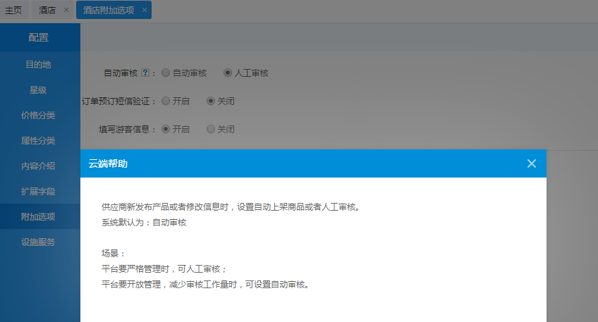 對于酒店這一款大家常用的應用,本次思途也做了一些新的改動。不少旅游電商平臺都入駐了供應商,那么在供應商較多,產品較豐富的時候,開啟自動審核就可以幫助我們管理員減少審核供應商發布信息的工作量,整體的工作效率也可以提高。