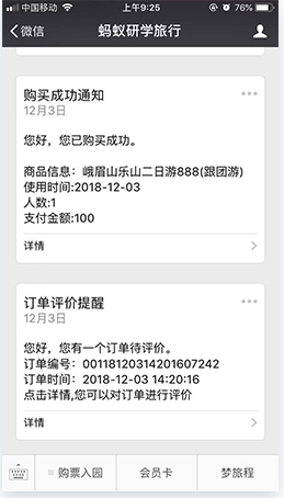 基于微信公眾平臺的【模板消息】插件,幫助旅游商家實時通知用戶訂單消息、刺激用戶活躍。