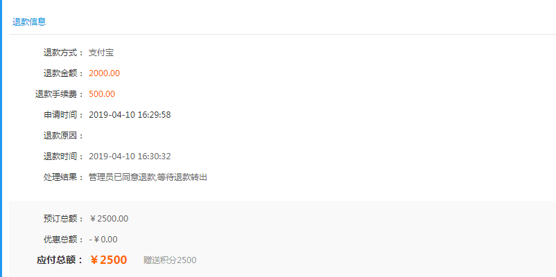 有思途客戶反映,訂購供應商產品的游客在超過與平臺約定時間后申請退款,是需要扣除手續費的,而有的時候,系統并不能判斷是否需要扣除,此時則需要平臺管理員手動進行操作。但由于邏輯問題,顯示的退款金額仍是未扣除手續費的金額,因此很容易讓消費者誤解。在收到用戶的建議后,思途也針對線路、景點產品進行了邏輯調整。更新之后,管理員在后臺處理供應商訂單退款信息,需要填寫退款手續費,同時前臺也會顯示手續費信息,讓用戶一目了然。
